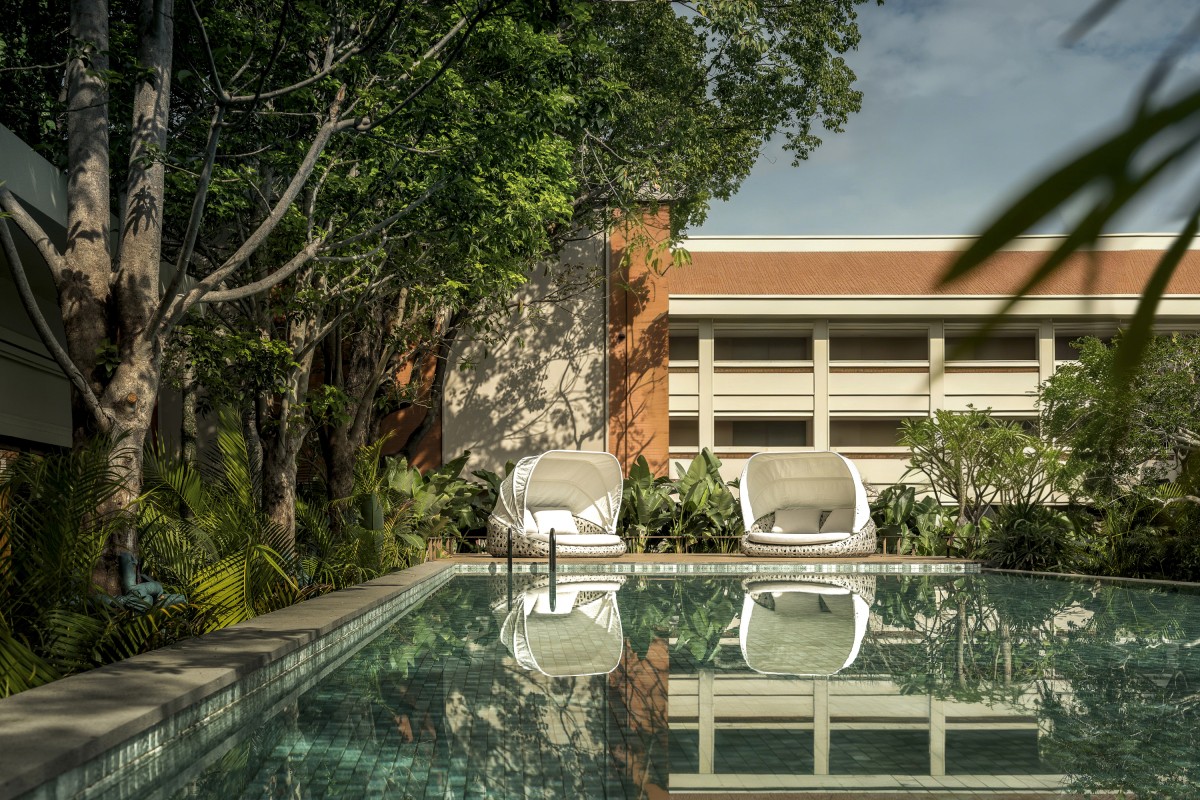 千年的皇家气度与城市现代化的记忆在此叠合——古树、旧泉、老门头被悉心保留,成为空间里沉默的叙事者。逾90%客房配备私密泡池或庭院,德化白瓷、永春佛手茶、LE LABO备品——泉州顶级的待客之道,于细节处从容铺展。